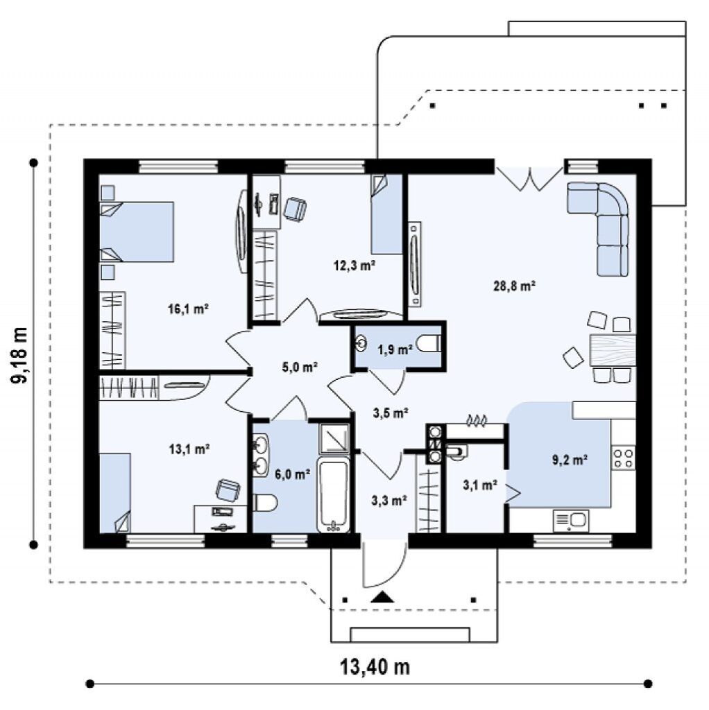 Общая площадь: 92 m2